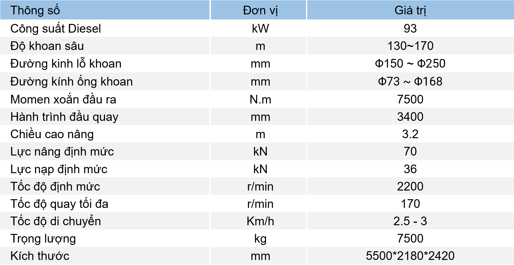 THÔNG SỐ KỸ THUẬT CHÍNH
